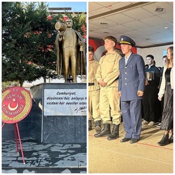 10 Kasım Atatürk'ü Anma Haftası etkinlikleri kapsamında, Cumhuriyet Meydanında bulunan Atatürk Anıtı'na; Kaymakamlık ve Belediye Başkanlığı çelenklerinin konulmasıyla başlayan törende, Atatürk'ün hayata gözlerini yumduğu 09.05'te siren çalarken saygı duruşunda bulunuldu ve akabinde, İstiklal Marşı okundu.