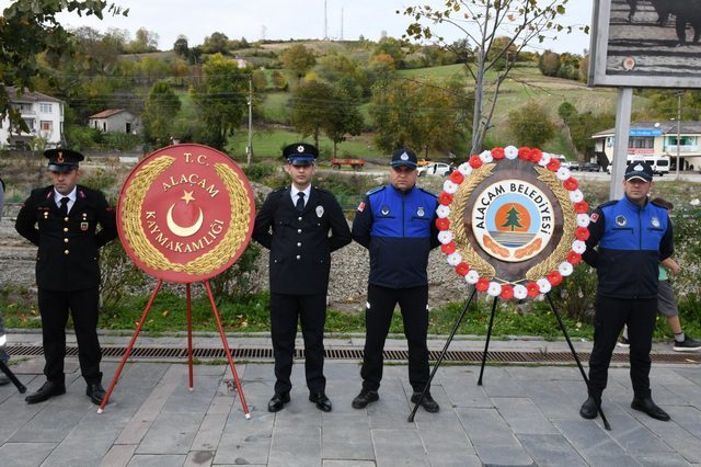 Alaçam Kaymakamlığı ve Belediye Başkanlığı çelenklerinin, Kaymakam Fatih Kayabaşı ve Belediye Başkanı Ramazan Özdemir tarafından sunulmasının ardından, Saygı Duruşu ve İstiklal Marşı ile tören sona erdi.