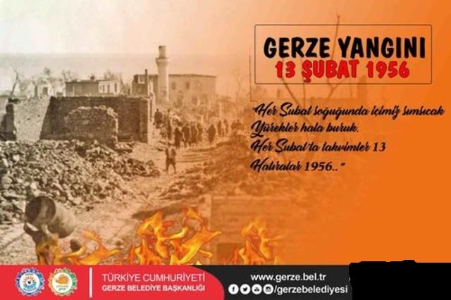 ''13 Şubat 1956 Gerze ilçemiz için tarihe geçmiş en acı günlerin başında gelmektedir. Bundan 70 yıl önce büyük bir ihmal sonucu meydana gelen yangın felaketi 21 vatandaşımızın can kaybına ve hemşehrilerimizin mal kaybına neden olarak, halkımızın ve ilçemizin üzerinde acı ve derin izler bırakmıştır.Dönemin Reis-i Cumhur’u Celal BAYAR ve Dönemin Başvekili Adnan MENDERES tarafından Gerze’miz küllerinden doğarak tekrar şehirleşmiş, acılar sarılmaya başlanmıştır.