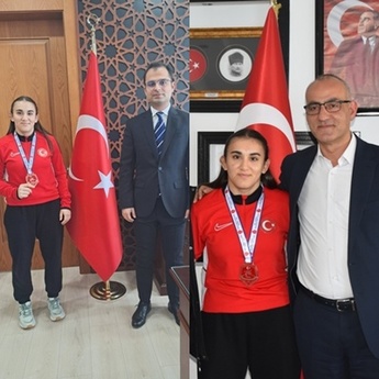 TÜRKİYE 3. MİLLİ GÜREŞÇİ MEDİNE CİVELEK İN KAYMAKAM VE BELEDİYE BAŞKANI ZİYARETİ