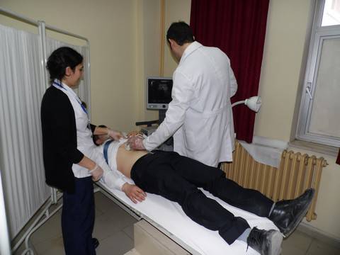ultrasonografi cihazı ile karın bölgesi, safra kesesi, karaciğer, böbrek