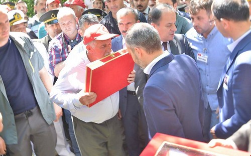 Defin töreninin ardından Gençlik ve Spor Bakanı Sayın Akif Çağatay KILIÇ, şehidimizin fotoğrafını ve naaşına sarılı şanlı bayrağımızı öperek şehidimizin babası Nevres ve annesi Hatice ŞİLEPE’ye öperek teslim etti.
