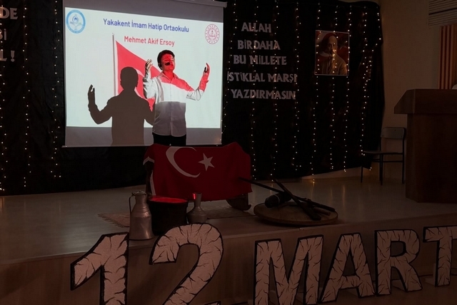 12 Mart İstiklâl Marşı’nın Kabulü ve Mehmet Âkif Ersoy’u Anma Günü kapsamında, Yakakent İmam Hatip Ortaokulu tarafından hazırlanan anma programı, 100. Yıl Ortaokulu konferans salonunda gerçekleştirildi.