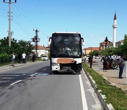 YOLCU OTOBÜSÜ TRAKTÖRE ÇARPTI